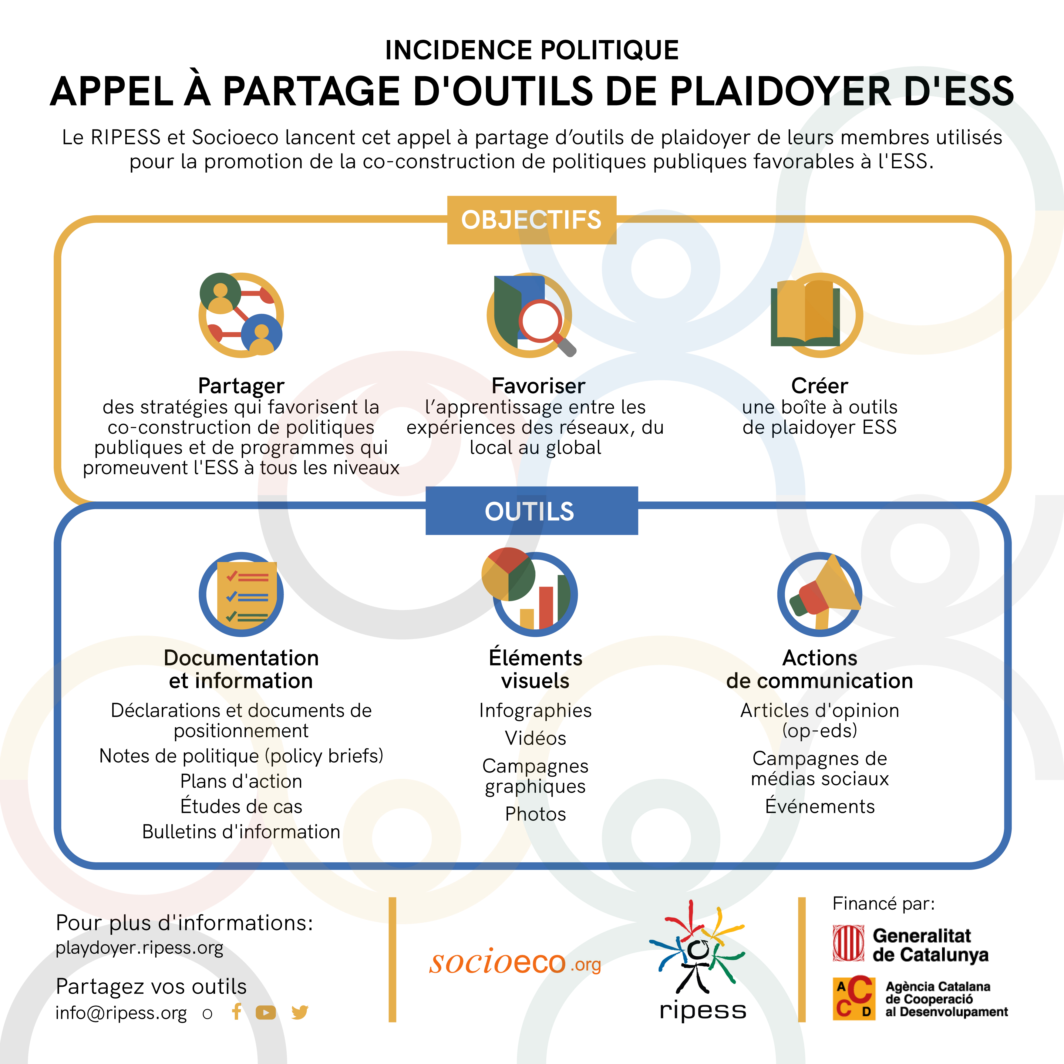 Depuis RIPESS, en coopération avec Socioeco, nous avons lancé un appel mondial aux outils de plaidoyer utilisés par les réseaux de l’ESS et d’autres acteurs pour contribuer à la co-construction des politiques publiques de l’ESS.