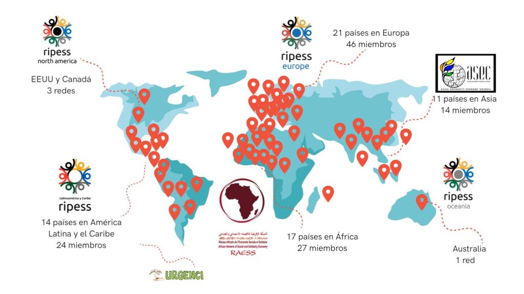 - Conscientes de que actuar a nivel continental no era suficiente, se identificó la necesidad explícita de organizarse a escala mundial, para promover la ESS en todo el mundo incluso en instituciones internacionales como las Naciones Unidas y sus agencias especializadas, incluida la Organización Internacional del Trabajo (OIT).