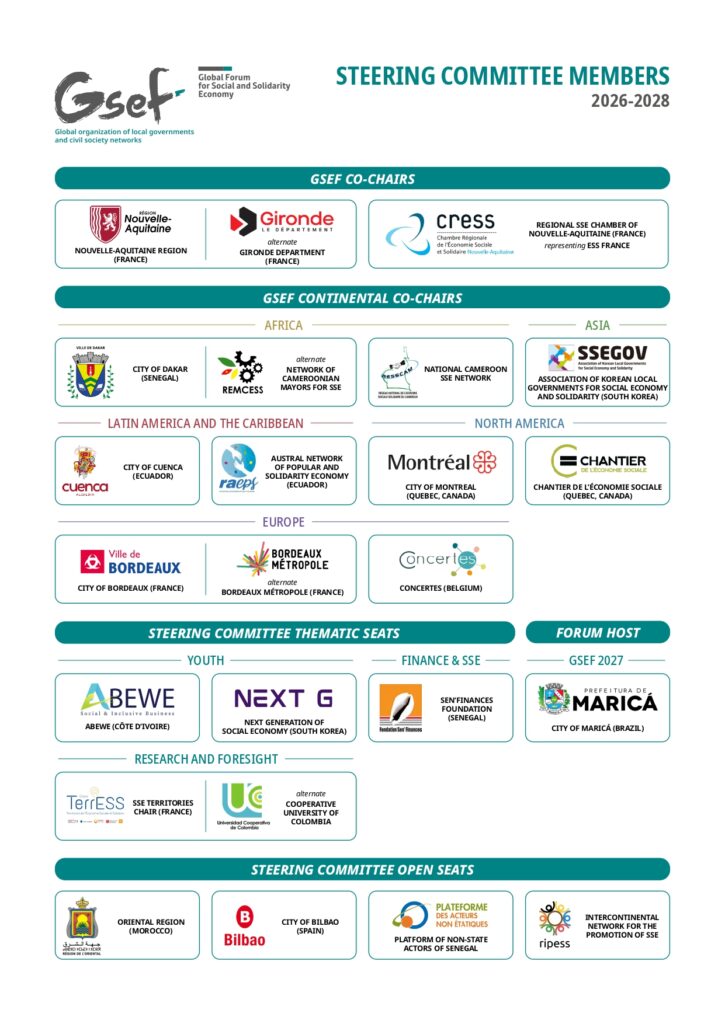 We celebrate the election of the new Governance Committee of the Global Social Economy Forum (GSEF) for the 2026–2028 term, an important step to continue strengthening a representative, diverse, and values‑aligned governance for the Social and Solidarity Economy (SSE).