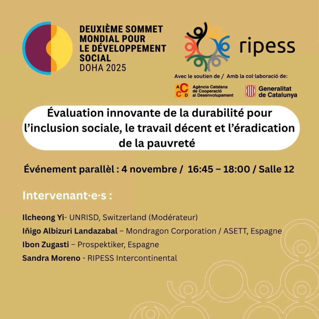 RIPESS participe à deux événements parallèles lors du Deuxième Sommet Mondial pour le Développement Social (WSSD2) à Doha, réaffirmant le rôle clé de l’économie sociale et solidaire dans l’Agenda 2030.